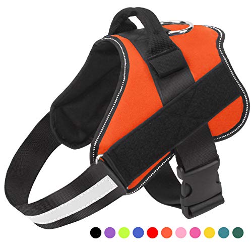 SUPER COMFORTABLE: Pulling pressure is evenly distributed to the body to prevent pulling and choking. The dog vest harness have a adjustable chest strap with snap on buckle, move its body parts freely, can customized fits for your dogs growth do not need to always change it.