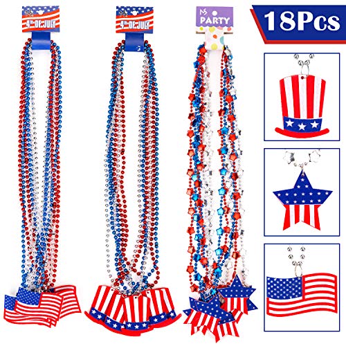 3 UNIQUE STYLES – There are 6 star necklaces, 6 Uncle Sam hat necklaces and 6 American Flag necklaces are included in the package, each style in 3 different colors, full of festive elements, and enough for holiday decoration. The star necklace is stringed with star and round beads, the other two are with round beads.