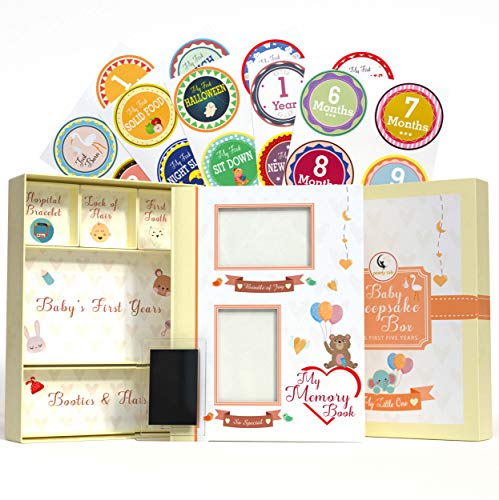 ✅WHAT’S INSIDE THE KIT!? Your Newborn Memory Kit contains (1) Baby Scrapbook with 58 printed pages to follow along their journey from ultrasound to that first school photo. 10 Blank pages let you keep personal tales, and 5 photo pages hold twenty 4×6 pics. (30) Baby Monthly Stickers for photoshoots, (1) Baby Footprint Kit with ink pad, and (1) Keepsake Box with Divided Spaces. A baby registry must have!