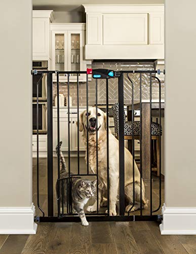 EXTRA TALL AND WIDE: Stands 36 inches tall. Expands to stairways and openings between 29-36.5 inches wide. Pressure mount design that is quick to set up. No tools required and is gentle on walls