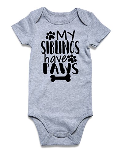 Baby Bodysuit in cute letter printed-My SIBLING HAVE PAWS .