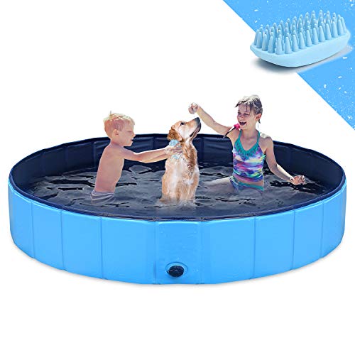 PORTABLE: Pet swimming pool adopts convenient fold-down design, making it easy to store and carry when outdoors or traveling.