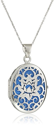 Sterling silver necklace featuring open-and-close lotus flower locket lined in fabric for peek-a-boo effect