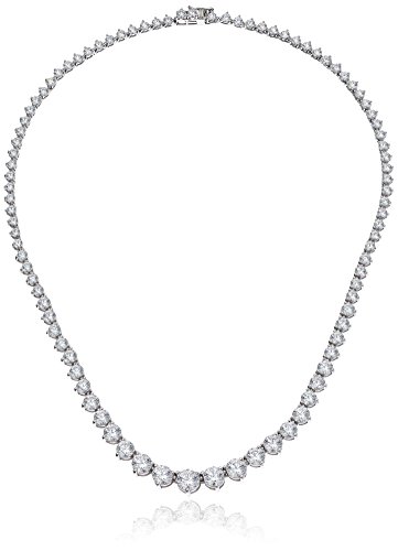 Platinum plated necklace featuring glistening strand of graduated round brilliant cut Swarovski Zirconia in prong settings