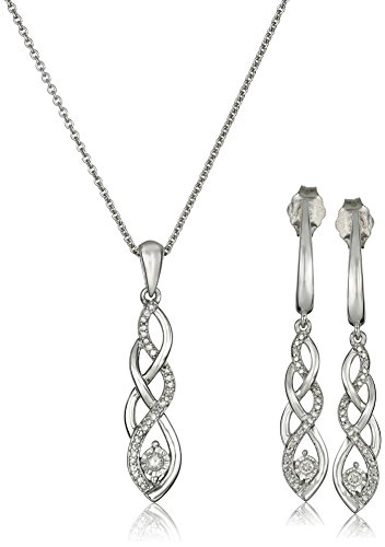 Two-piece jewelry set featuring necklace and earrings with diamond-accented twisted pendants