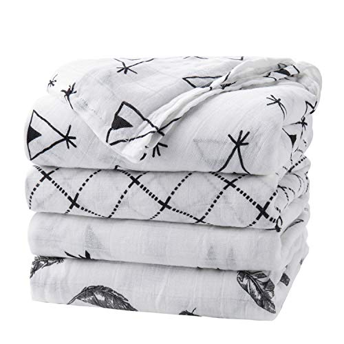 Practical and good-looking:Ideal for swaddling, sunshield, tummy time, privacy throw and more.Four individual unisex patterns that suit for both baby girls and baby boys