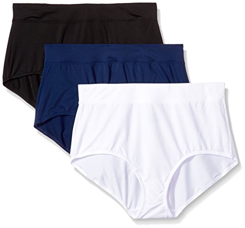 Warner's Women's Blissful Benefits No Muffin Top 3 Pack Brief Panty, Black/Navy Ink/White, L