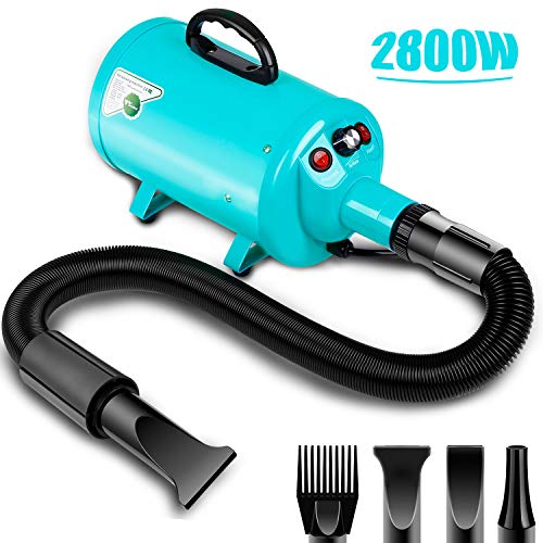 【HOME USED & PROFESSIONAL DRYER】 With 3.8hp/2800w power system, you can dry big dog with thick coat in a short time. Come with spring hose (1m/3ft to 2m/7ft) and 4 replacement airflow head, this pet dryer is very handy to blow pets’ hair in home. You will save tons of money and time.