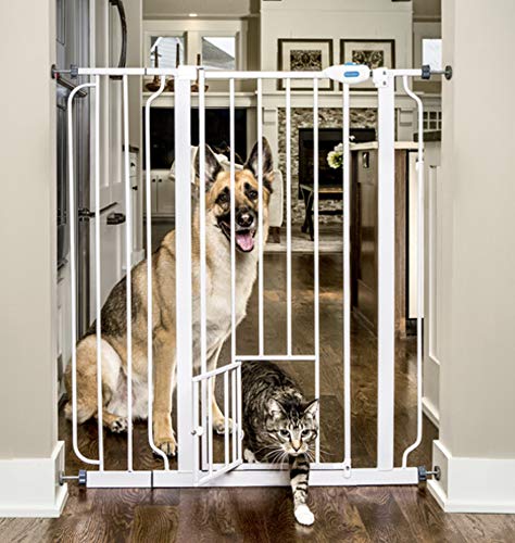 EXTRA TALL: Expands to stairways and openings between 29-36.5 inches wide. Stands 36 inches tall. Pressure mount design that is quick to set up. No tools required and is gentle on walls