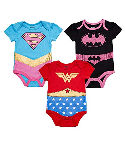 ✔FEATURES – Newborn baby girl onesies bodysuit with 3-snap closure for easy dressing, cute pink Wonder Woman babygirl bodysuit with classic logo on the chest and the script ‘I Am’, blue and pink Supergirl infant baby girl bodysuit with glitter Superman logo, and a grey and pink Batgirl onesie bodysuit with the cute script ‘Fearless’.