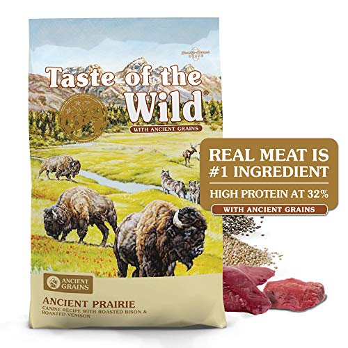 Taste of the Wild Ancient Prairie; with roasted bison and roasted venison; real meat is the #1 ingredient; high quality and protein rich for LEAN, STRONG MUSCLES