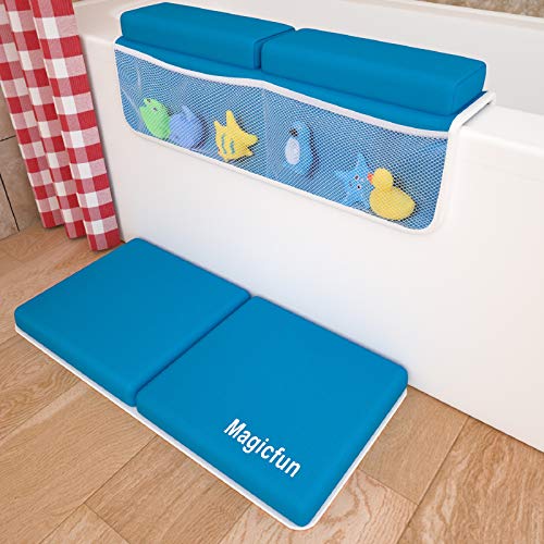 【4 Storage Pockets & 6 Animal Toys】 The bath kneeling pad set can do more than protecting your knees and elbow. We especially design storage pockets on both sides of the bathtub kneeler for additional convenience. And you can place put all bath accessories like bath animal toys, soaps, shampoos, towel etc. in these pockets, so easy!(6 cute bath toys are Included)