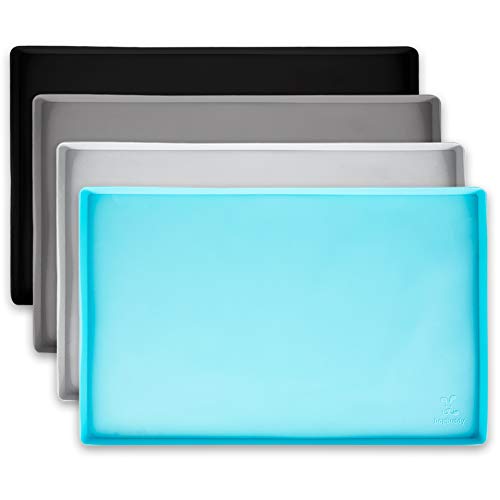 ❤️ CONVENIENT: Unlike other dog food mats that have textured surface, our dog mat has smooth surface, which is much easier to clean and it is better at preventing dog bowls from sliding due to stronger contact with the pet bowl. Our dog bowl mat is easy to wipe with a wet cloth or wash by hand and it is dishwasher safe. If you are traveling or just visiting friends, you can just roll it and take it with you.