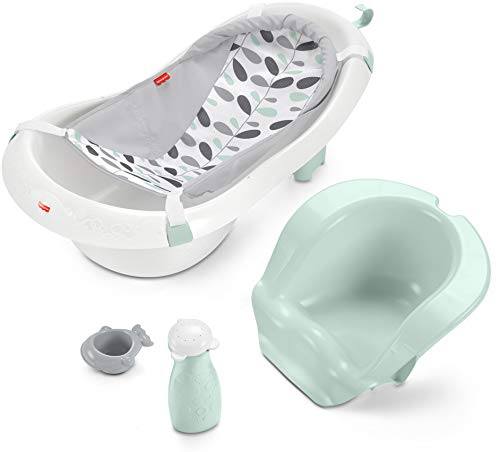 Four-stage, convertible baby tub for newborn, infant and toddler bath times.