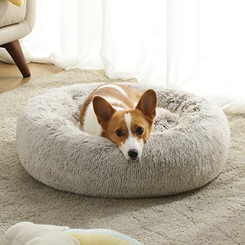 🍩【Unique Design】- Donut cuddler dog bed is ideal for pets who love to curl up, raised rim design provide head and neck support, to ease the muscle soreness and joint pain for your loyal friend.