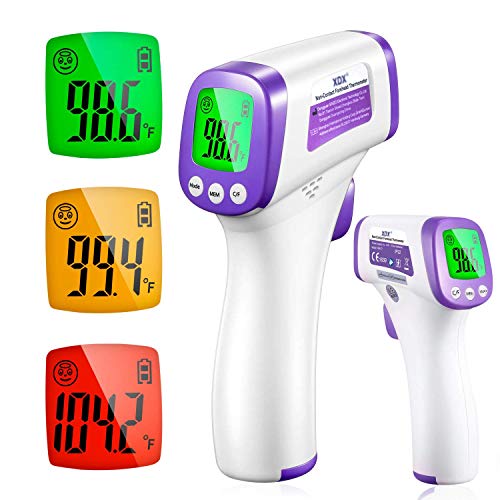 👍[INTELLIGENT, USER-FRIENDLY] The XDX no touch forehead thermometer can store and recall up to 10 previous readings. You can easily lookup historical data you need. It is for adults and kids with ergonomic and non-slip design, comfortable grip for either hands, with easy controls for anyone to operate safely.