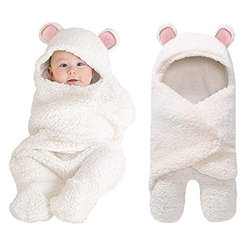 【Adjustable Size】Extra thick hooded baby blanket swaddles wrap blanket 24*11*1.2 inches. Suitable for 0-6 months baby, adjustable baby’s hook, and loop for easy swaddling.