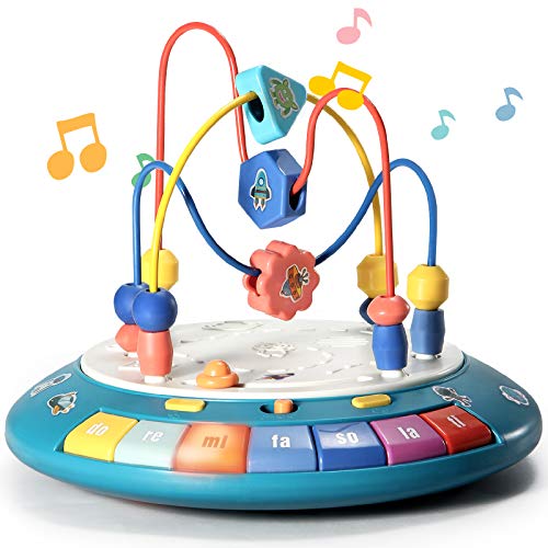 SPACE-THEMED EDUCATIONAL MULTI PLAY BABY TOYS: The musical bead maze is a flying saucer design that comes with cute space-themed stickers for DIY. Play with this multi-functional toy, babies can master round beads along with roller-coaster wires, press keys to trigger music, crawl and chase the moving toy. Combining all these skills means the baby can entertain herself for a while at a time.