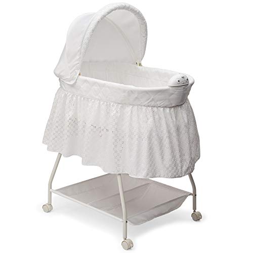 LIGHTS AND SOUNDS: Features a calming nightlight and soothing music. Baby bassinet requires 4 AA batteries (not included)