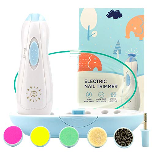 TAKE THE FEAR OUT OF CLIPPING BABY’S NAILS – No more accidentally clipping baby’s finger; our baby-friendly electric nail trimmer would stop spinning if it is pressed too hard against baby’s finger; spoil your little one with a baby manicure kit