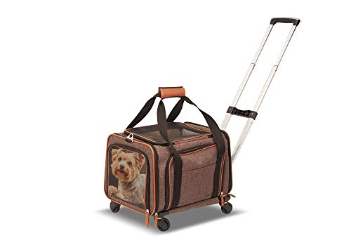 IDEAL FOR STRESS-FREE PET TRANSPORT:- Fully retractable premium material handle & 360 degree rotating and removable wheels ensuring smooth, quiet, and effortless rolling mobility in any direction resulting in a bump free ride for your pet. Easy mechanism to attach and detach bag from wheel platform allowing bag to be used as a regular double sided expandable carrier