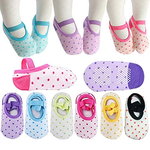 6 ADORABLE AND STYLISH PAIRS – Bursting With Color These Toddler and Baby Girl Grip Ballet Sock Featuring Non-Skid / Anti-Slip Bottom. Perfect for a beginning walker or little one on the move! This Baby 8-30 Months Sock is Perfect for All Little Girl’s Fall and Winter outfits and clothing. Toddler 8-30 Month Socks With Straps.